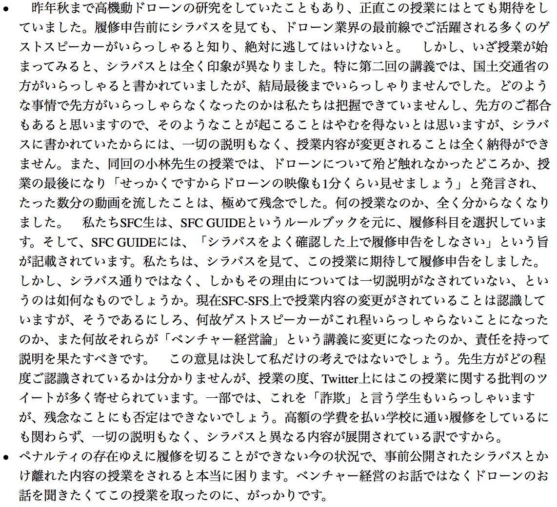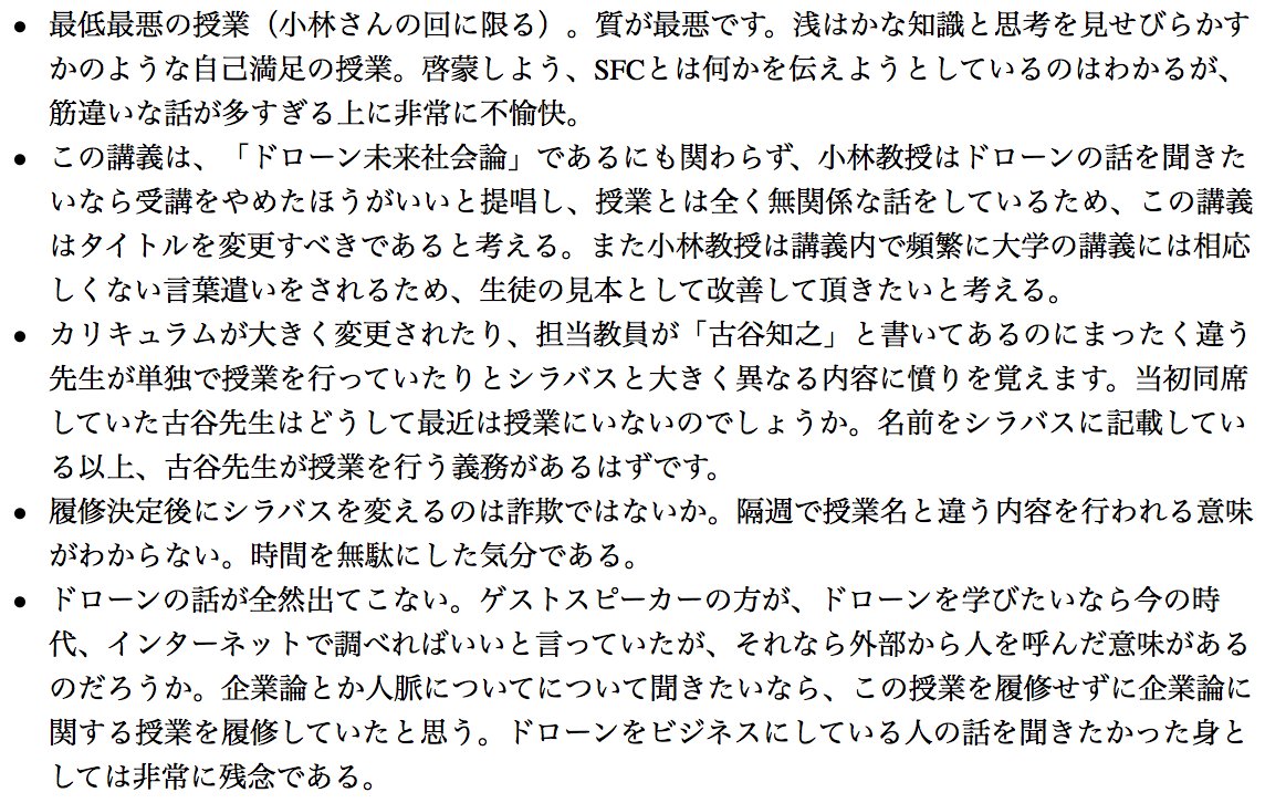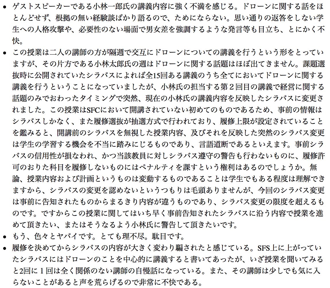 まあドローンと関係がない人間をドローン授業の講師にしたSFCが悪い(セクハラはこいつが悪い) ja.wikipedia.org/wiki/%E5%B0%8F… pic.twitter.com/b2z2CbrWLT