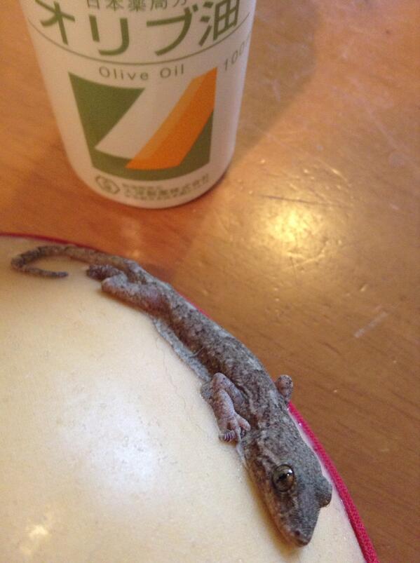 ひからびてしまわないように水をかけたら、超怒られた(´Д` ) この際ヌーブラの無事は問わないのでやもりを救出したい。 http://t.co/nqBNog9l8T
